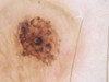 При дерматоскопическом исследовании (см. изображения) выявляются признаки меланоцитарного невуса.